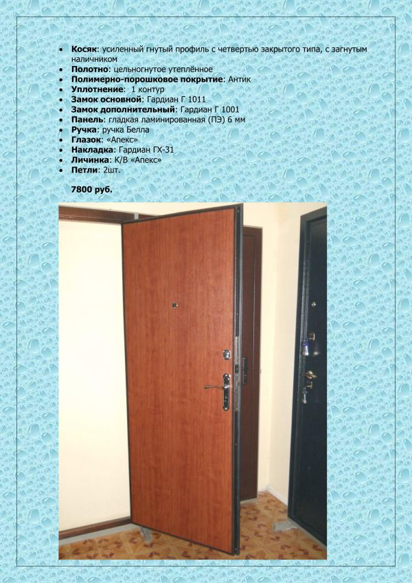 Изготовление металлических дверей эконом класса 6300 рублей, косяк гнутый (не труба), цвет (шагрень, антик), З-Г1011, Р-Г4331, ПЭ-3мм., задвижка, глазок.